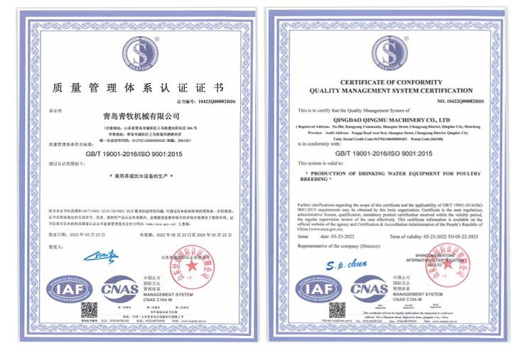 青島青牧機械有限公司成立于2013年,是一家集研發(fā)、生產(chǎn)、銷售、服務(wù)于一體的綜合性企業(yè)。公司專注于家禽飲水設(shè)備的研發(fā)和生產(chǎn),擁有專業(yè)的研發(fā)團隊、先進的加工設(shè)備以及自動化組裝線,力求打造“簡單、高效、環(huán)?!钡母叨饲萦蔑嬎到y(tǒng)。